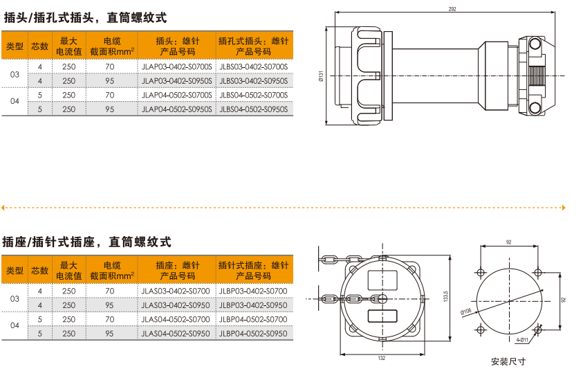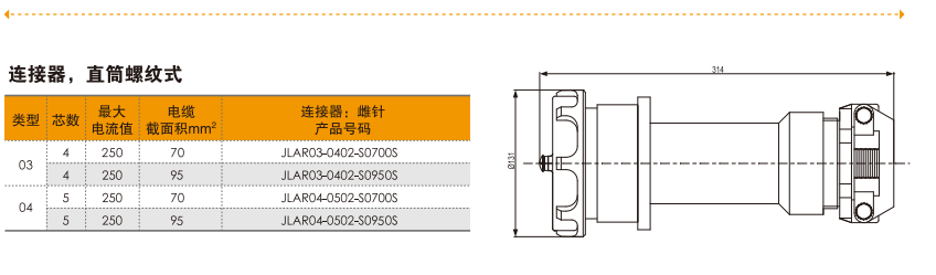 ◇ 最大电流:250A,最大电压:690V(4芯/5芯)。